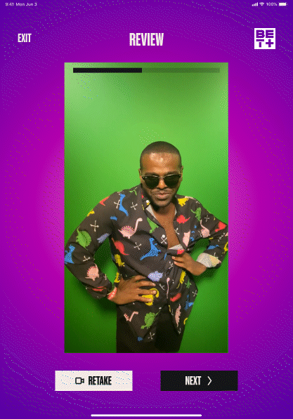 This experience was held in person at House of BET, a BET Awards event. The activation was hosted alongside a MARTIN set replica, to celebrate and promote the reunion. With 555 individual users, a total of 228 Intro Sequences were created and sent out to fans.