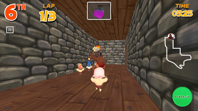 The second mini-game, inspired by 90s racing games, had players racing to recover Barb’s stolen sword while riding one of six characters on the Barbarian’s back. This game was more complex, requiring all assets to be fully modeled and rendered in 3D. I contributed by designing 2D mockups and textures for characters and environments, and provided art direction for the 3D modeling of key assets, including characters, coins, and power-ups.