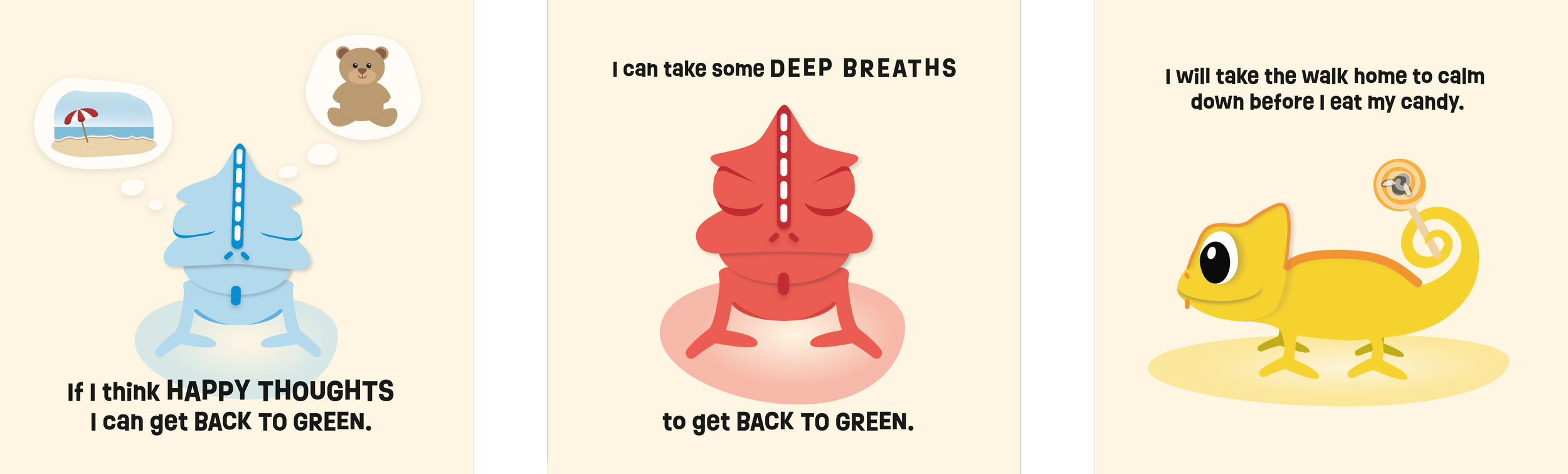To solve this pain point, I coded a digital version of the storybook in p5.js meant to be displayed over a SMARTboard. This would allow the teachers to read and practice the coping mechanisms with and entire classroom of students.